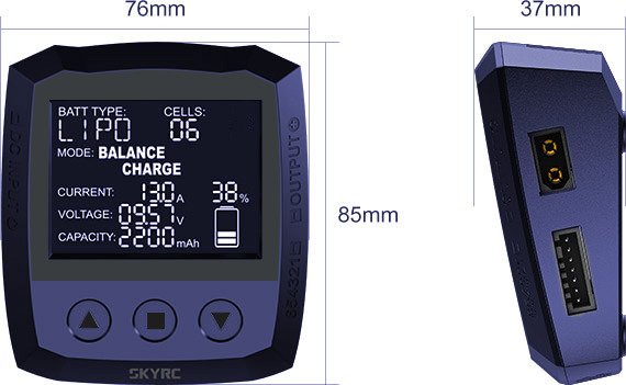 SkyRC B6 Lite es un cargador pequeño pero potente, diseñado para las necesidades de los aficionados y profesionales. Con B6 Lite, la carga se vuelve más rápida y agradable. B6 Lite tiene botones táctiles que son duraderos, extremadamente sensibles y suaves, así como un funcionamiento sin problemas. B6 Lite es un diseño y software altamente optimizado, que le permite extraer una enorme potencia de un dispositivo tan pequeño. Se recomienda utilizar fuentes de alimentación con una potencia de al menos 270 W.